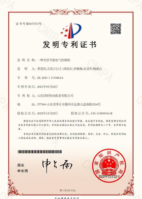 山東國恒機(jī)電配套有限公司簡      介 山東國恒機(jī)電配套有限公司是一家集新能源、高科技、智能化生產(chǎn)研發(fā)、制造、銷售為一體的綜合性現(xiàn)代化高新技術(shù)企業(yè),公司座落在魯班故里、墨子之鄉(xiāng)滕州,公司始建于2005年,注冊資本1億元,擁有各類中、高級專業(yè)技術(shù)人員100余名。主營業(yè)務(wù)涉及高科技智能電力裝備、新能源儲備輸送,220kv及以下輸變電工程勘察設(shè)計(jì)、制造、銷售、安裝、售電和智能充電樁能效運(yùn)維,并從事生產(chǎn)制造交直流充電樁設(shè)備、成套開關(guān)設(shè)備、各型號高低壓開關(guān)柜、箱式變電站等電氣設(shè)備,是棗莊地區(qū)唯一一家國資入股的新能源高端品牌企業(yè)。公司擁有獨(dú)立… 【查看更多】